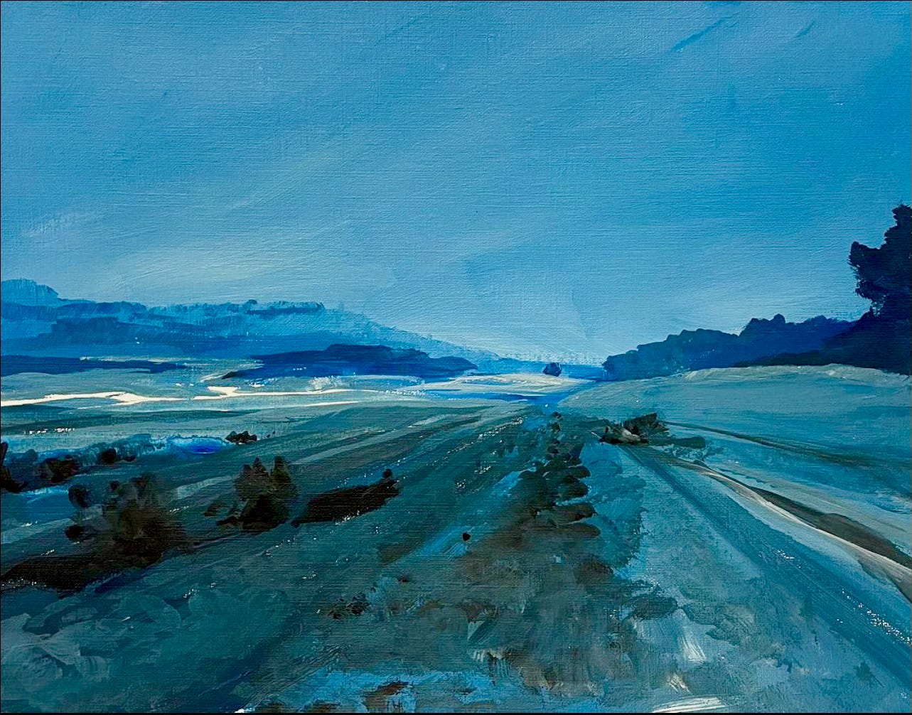 Two figures flawed in their thought Menageries spot shorelines afar, Find that even water won't wait up. It's as though some seismic sponge Came and wiped it all up, All the stuck stuff they'd mucked. The figures keep walking; they'll soon stop At the silent place where bright days become blue nights & nothing ever hurts. Keep your fixed gaze gloaming On that foreshore haze where The horizon bends a bit; There are places you can’t see yet.